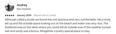 We can certainly say you will have an enjoyable stay in a very relaxed and spacious studio with beautiful surroundings.