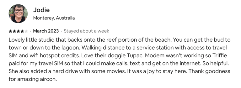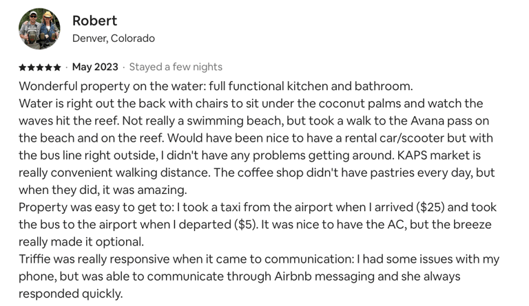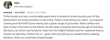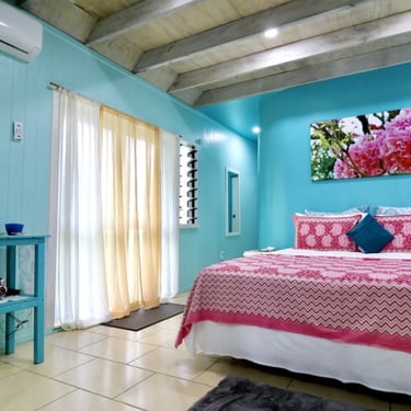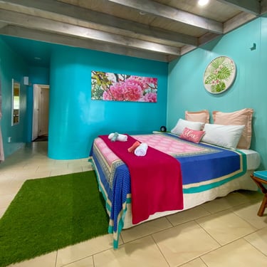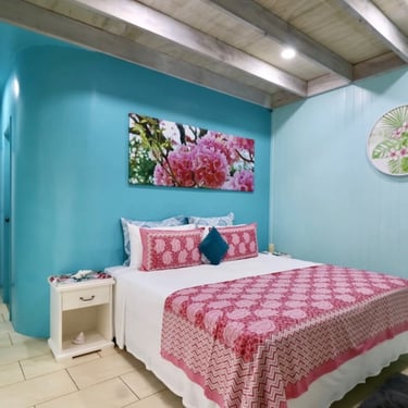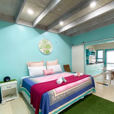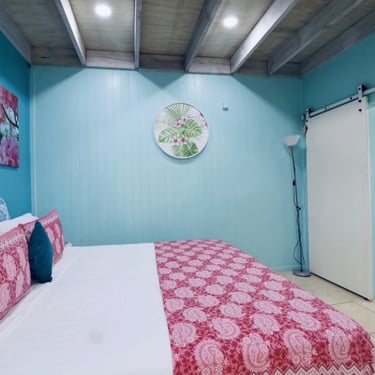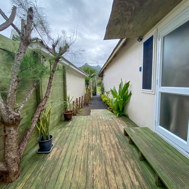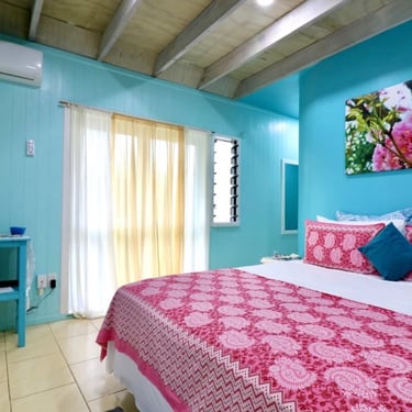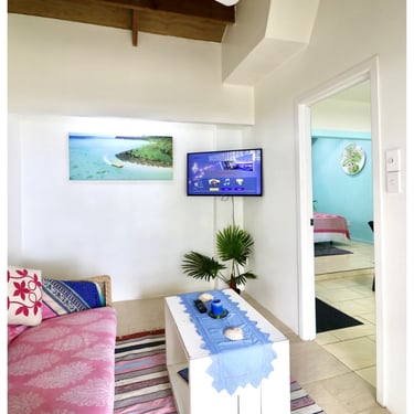 Our ShineAwayHome Ocean View is a large airy fresh and cheerful open plan studio. We are situated on the eastern side of the island of Rarotonga which is home to beautiful sunrises. ShineAwayHome is on the main road of Matavera, a studio that have been renovated from the well known TokerauJim Pearl Showroom to a now modern living space with outside decking, a garden full tropical foliage and with stunning mountain views. Matavera beach is a rugged shoreline is perfect for those early morning walks and great for shell seekers but not ideal for swimming. However the well known Muri beach is only 3km away with the infamous Muri night market also that comes alive four evenings every week. We a just a few steps to the absolute best coffee and croissants on the island. 2min walk to minimart where you will get all you need for your short stay