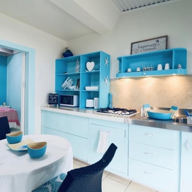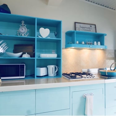 Kitchen has all you might need from coffee machine with freshly ground coffee cold drinking water. Kitchen has a gas stove,microwave,fridge and small freezer, toaster ,kettle and all cooking utensils ,crockery and cutlery.fresh herbs from the garden if you like some for garnish.